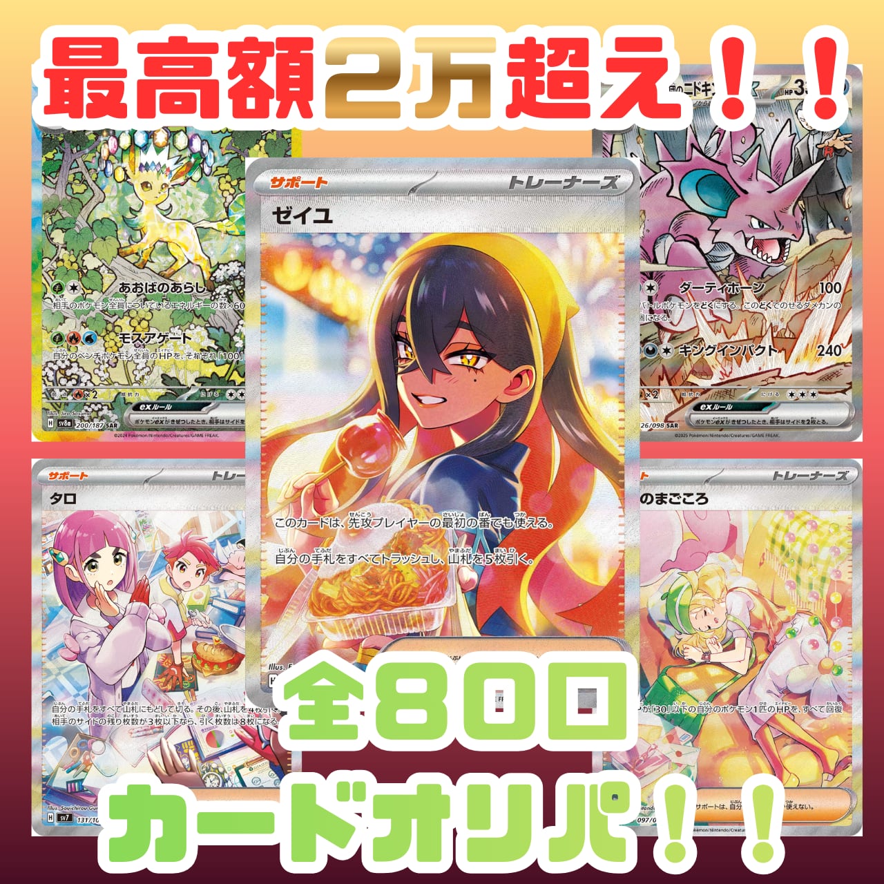 ゼイユSAR、タロSAR、ベルのまごころSAR、リーフィアexSAR、ロケット団のニドキング